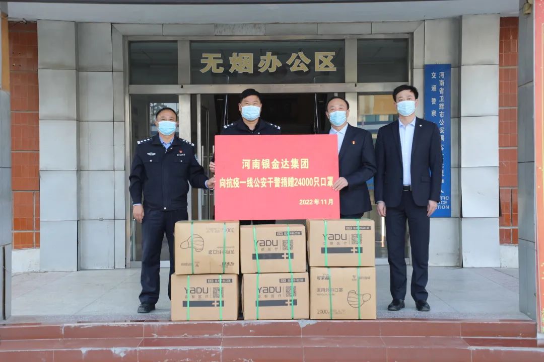 在當(dāng)前疫情嚴(yán)峻復(fù)雜的形勢(shì)下,公安干警不懼風(fēng)險(xiǎn)英勇戰(zhàn)斗在疫防一線,為守護(hù)一方平安和抗擊疫情作出了重要貢獻(xiàn)。銀金達(dá)集團(tuán)黨委書記、董事長(zhǎng)閆銀鳳為助力公安干警抗擊疫情,委托集團(tuán)黨委副書記、工會(huì)主席楊鳳瑞和彩印公司副總經(jīng)理劉廣斌到衛(wèi)輝市公安局、衛(wèi)輝市交警大隊(duì)慰問,并捐獻(xiàn)防疫口罩2.4萬(wàn)只,表達(dá)銀金達(dá)干部職工的熱誠(chéng)問候。